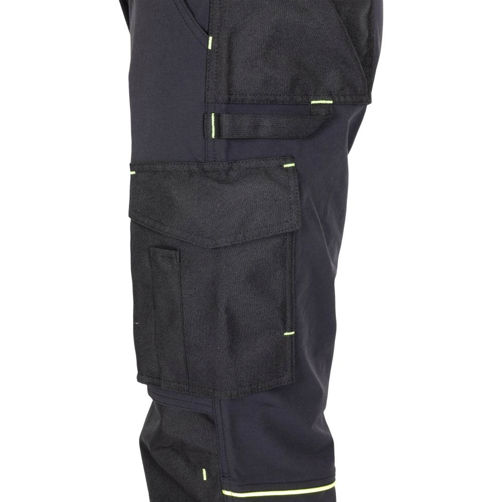 Doua buzunare in talie, doua buzunare la spate, buzunarul drept inchis cu clapeta si velcro, buzunarele din lateral pe picior care au compartimente pentru unelte.